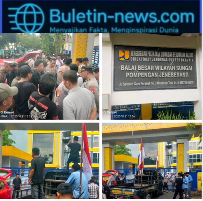 Makassar, Buletin-news.com – Koalisi Mahasiswa Anti Korupsi Sulawesi Selatan (KOMAKS) menggelar aksi demonstrasi di depan kantor Balai Besar Wilayah Sungai (BBWS) Pompengan Jeneberang, Makassar, Selasa ( 21/10/2025 ).