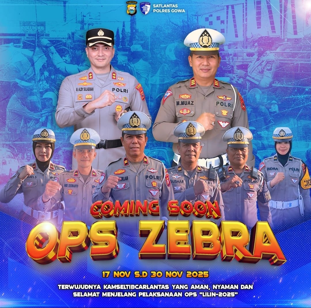 Kasatlantas Polres Gowa, AKP Muh. Muaz, menjelaskan bahwa Operasi Zebra akan dilaksanakan selama dua pekan, mulai 17 November hingga 30 November 2025. “Operasi Zebra ini menjadi tahapan awal untuk menyiapkan kondisi tertib di jalan raya, sekaligus mengedukasi masyarakat agar disiplin berlalu lintas menjelang libur panjang Nataru,” ujarnya di Jl. Syamsuddin Tunru, Sungguminasa, Kamis (13/11/2025).