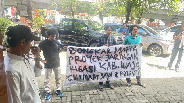 Makassar, Buletin-news.com — Publik Research Institute (PRI) menggelar aksi unjuk rasa besar-besaran di tiga titik utama, yakni Kantor Dinas Sumber Daya Air, Cipta Karya, dan Tata Ruang Provinsi Sulawesi Selatan, Kantor Gubernur Sulawesi Selatan, dan Kantor Kejaksaan Tinggi Sulawesi Selatan (Kejati Sulsel). Aksi ini dipimpin langsung oleh Usman, selaku Koordinator Lapangan PRI, sebagai bentuk protes atas dugaan kuat tindak pidana korupsi dalam Proyek Peningkatan Jaringan Irigasi di Cilellang, Desa Liu, Kecamatan Sabbangparu, Kabupaten Wajo.
