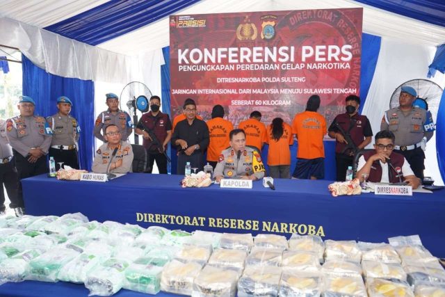 Dalam konferensi pers yang digelar di Mapolda Sulteng pada Selasa (18/11/2025), Kapolda Sulteng, Irjen Endi Sutendi, didampingi Kabid Humas, Kombes Pol Djoko Wienartono, dan Dirresnarkoba, Kombes Pol Pribadi Sembiring, memamerkan barang bukti dan menghadirkan lima tersangka yang berhasil diamankan.