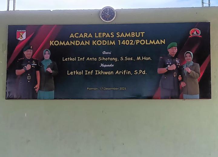 Polewali Mandar — Jabatan Komandan Komando Distrik Militer (Dandim) 1402/Polman resmi berganti. Letkol Inf Ikhwan Arifin, S.Pd., kini mengemban amanah sebagai Dandim 1402/Polman setelah mengikuti upacara Serah Terima Jabatan (Sertijab) yang berlangsung khidmat dan penuh makna di Aula Andi Depu Makorem 142/Tatag, Selasa (16/12/2025).