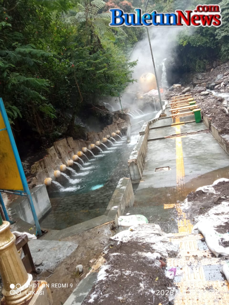 Tegal- jateng-Buletin news. Com-16/01/2026,Wisata pemandian air panas pancuran 13 Guci sudah mulai di buka dan bebas untuk rekreasi mandi air panas , walaupun masih tarap pembenahan. Dan perbaikan tempat fasilitas pemandian ini.