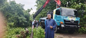 Akibat insiden tersebut, akses jalan poros sempat terganggu dan menimbulkan kekhawatiran warga sekitar, mengingat jalur tersebut merupakan akses utama aktivitas masyarakat. Beruntung, tidak ada korban jiwa dalam kejadian ini.