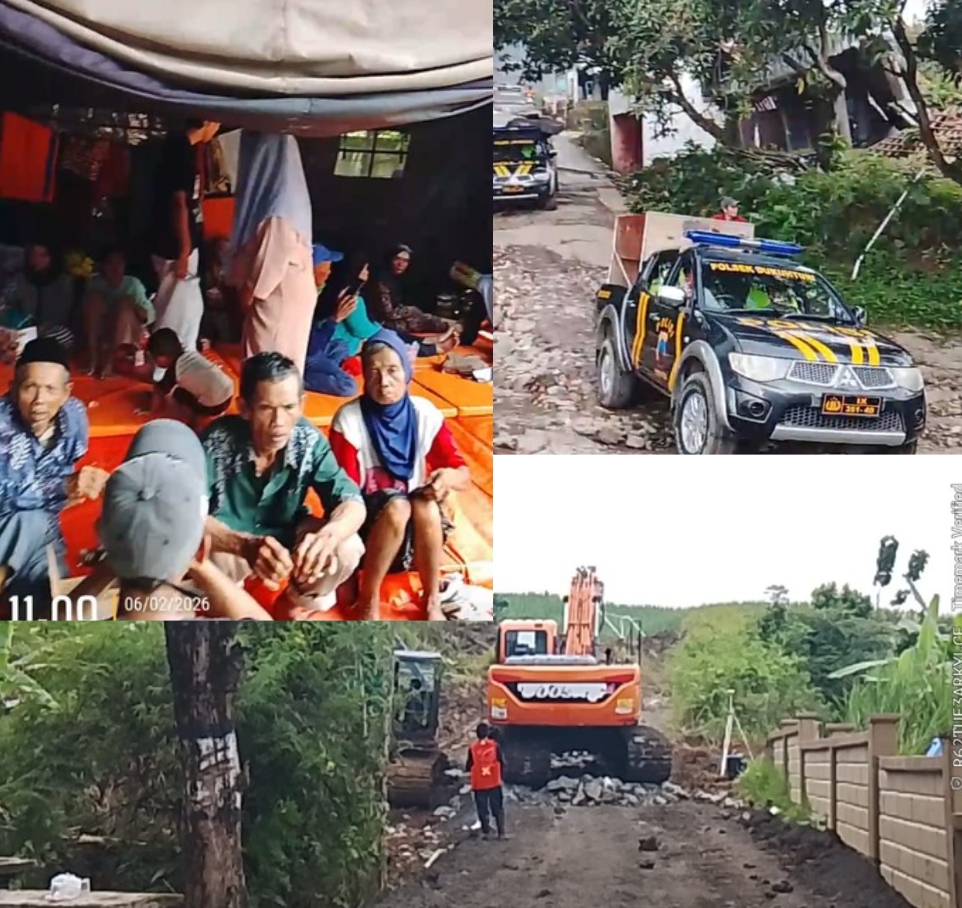 Saat ini, pihaknya juga turut mendukung pembangunan akses jalan menuju lokasi Huntara di Desa Capar serta melakukan patroli rutin di sekitar area tersebut. Kapolres Tegal AKBP Bayu Prasatyo menegaskan, “Polri hadir untuk memastikan keselamatan warga dan membantu masyarakat terdampak bencana. Saat ini kami terus memantau perkembangan situasi di Desa Pada Sari serta bersinergi dengan pihak terkait untuk mengantisipasi risiko tanah bergerak susulan.”