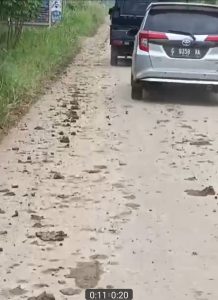 Material berupa tanah urug yang jatuh dari bak truk dan tidak ditutup terpal membuat badan jalan dipenuhi tanah. Saat hujan turun, tanah tersebut berubah menjadi lumpur licin yang membahayakan pengendara, terutama kendaraan roda dua. Beberapa pengendara dilaporkan tergelincir akibat kondisi tersebut.