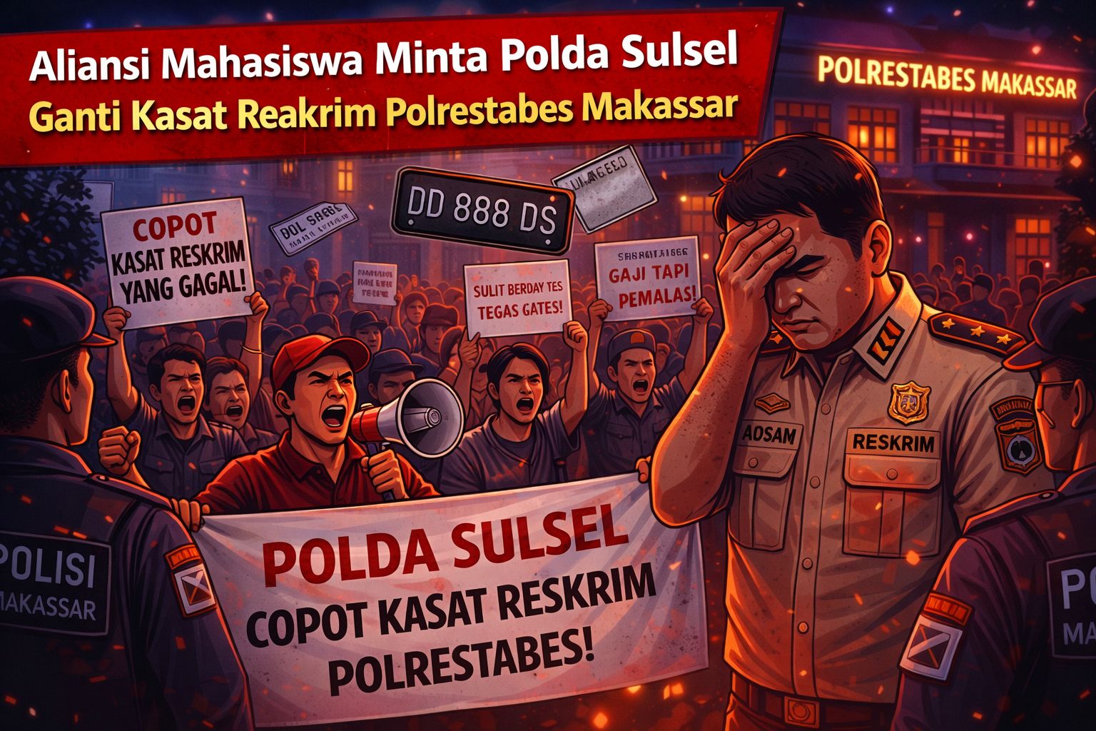 Pengusutan dugaan praktik penggunaan plat gantung di lingkungan Polrestabes Makassar.