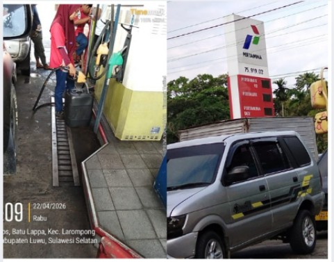 Fakta mencurigakan ini terekam jelas pada Rabu (22/04/2026). Di lokasi, terlihat aktivitas yang sangat tidak wajar di mana para pelansir dengan leluasa mengisi bahan bakar ke dalam wadah-wadah tidak standar berupa jerigen-jerigen plastik. Tidak hanya itu, deretan kendaraan yang dikenal sebagai “mobil siluman” juga terlihat mondar-mandir dengan intensitas tinggi, bahkan setelah diisi penuh mereka kembali lagi memutar dan masuk antrian baru seolah memiliki hak istimewa.